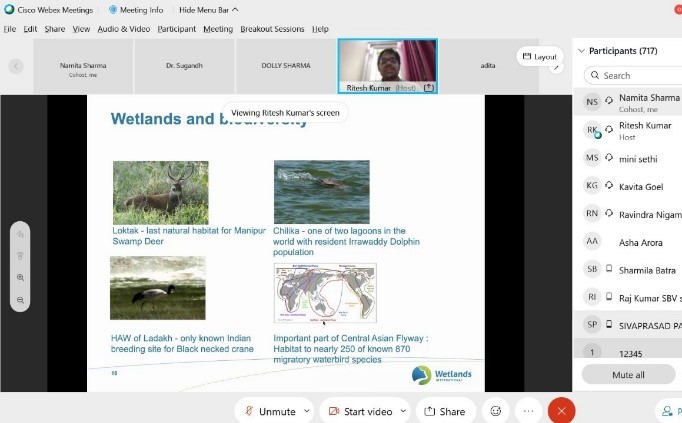 A training workshop for teachers on wetlands conservation was organized on 15th April 2021 in collaboration with the Wetland Authority of Delhi. The objective of the training was to equip teachers with ideas, activities and knowledge to introduce wetlands in classroom discussions. The online training was attended by over 750 participants from schools across Delhi. Dr Ritesh Kumar, Director, Wetlands International South Asia introduced the participants to wetland concepts, connections and interlinkages to facilitate learning and action in the classroom. Ms Namita Sharma, Technical Officer (Communications and Capacity Development), Wetlands International South Asia, presented supporting concepts and ideas around wetlands to aid teachers in mainstreaming wetland education in the school syllabus. A series of activities on wetlands have been planned by schools to take this mission forward in the coming weeks.